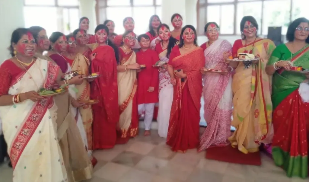 আজ মায়ের বিদায় বেলা, বিজয়া দশমী। মাকে বরণ করলেন মা, দিদি, কাকিমা ,বোনেরা। পুজোর কটা দিন বেশ আনন্দের সাথে কাটালেন সবাই। একসঙ্গে বসে খাওয়া-দাওয়া, গল্পগুজব, ছবি তোলা, নাচ ও গানের মাধ্যমে মায়ের আরাধনা করা, এগুলি সত্যিই বাড়তি পাওনা। মাকে বরণ করার পর সবাই নিজেদের মধ্যে সিঁদুর খেলায় মাতলেন। সবার গলায় বিষাদের সুর, তবে মা আসছেন আগামী বছর সেই প্রতীক্ষায় আজ থেকে দিনগোনা শুরু।