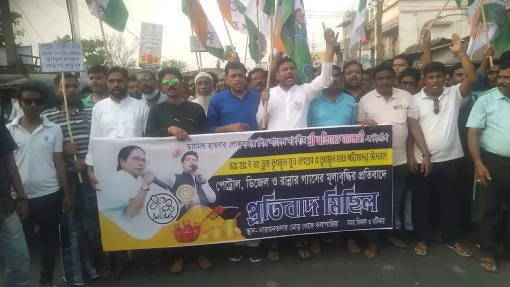 এদিন ডায়মন্ড হারবার ১১৭নম্বর জাতীয় সড়কে মিছিল নারায়ন তোলা থেকে কলাগাছিয়া মোড় পর্যন্ত কয়েক হাজার দলীয় কর্মীদের সঙ্গে নিয়ে প্রতিবাদ মিছিল হয়,তার পরই নরেন্দ্র মোদীর কুশপুতুল দাহ করে প্রতিবাদ জানানো হয় I পাশাপাশি এদিন কেন্দ্রীয় সরকারের জনবিরোধী নীতির প্রতিবাদে কেন্দ্র সরকারকে কটাক্ষ করে প্রধানমন্ত্রীর পদত্যাগের দাবি করেন ডায়মন্ড হারবারের বিধায়ক পান্নালাল হালদার। এছাড়াও উপস্থিতিত ব্লক ২ সভাপতি অরুময় গায়েন,সরিষা অঞ্চলের অবজারভার শামীম আহমেদ মোল্লা,যুব সভাপতি মাহবুবার রহমান গায়েন,মইদুল ইসলাম,নীতিশ মোদক সহ ব্লক ১ তৃণমূলের অন্যান্য কর্মী সমর্থকেরা।ব্লক ২ তৃনমূল কংগ্রেসের সভাপতি অরুময় গায়েন এদিন তিনি বলেন সাংসদ অভিষেক বন্দোপাধ্যায়ের নির্দেশে এই প্রতিবাদ মিছিল I যখন পাঁচ রাজ্যের বিধানসভা ভোট ছিল তখন প্রধানমন্ত্রী নরেন্দ্র মোদির রান্নার গ্যাসের দাম, পেট্রোল ডিজেল তেলের দাম বৃদ্ধি করেন নি। কিন্তু যেই ৫ রাজ্যে বিধানসভা ভোট শেষ তারপরেই বৃদ্ধি পেল পেট্রোল-ডিজেলের দাম। ৫০ টাকা বাড়ানো হয়েছে রান্নার গ্যাসের দাম। সাধারণ মানুষের ওপর চাপিয়ে দেয়া হচ্ছে ট্যাক্সের ভার, তার জন্য আজকে আমরা প্রতিবাদ মিছিল করেছি,তিনি আরও বলেন।