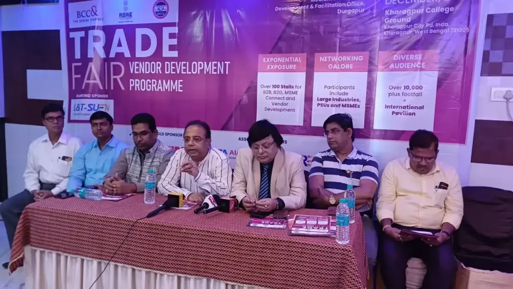 নিজস্ব সংবাদদাতা, খড়্গপুর: বেঙ্গল চেম্বার অফ কমার্স অ্যান্ড ইন্ডাস্ট্রির সহযোগিতায় এম এস এম ই মন্ত্রকের উদ্যোগে এম এস এম ই ভেন্ডার ডেভেলপমেন্টের জন্য খড়্গপুরে অনুষ্ঠিত হতে পাঁচ দিনের মেগা ট্রেড ফেয়ার। আগামী ১৪ থেকে১৮ ডিসেম্বর ২০২৩ খড়্গাপুর কলেজ গ্রাউন্ডে এই বিশাল শিল্প ও বানিজ্য মেলা অনুষ্ঠিত হবে। কনফেডারেশন অফ পূর্ব এবং পশ্চিম মেদিনীপুর চেম্বার অফ কমার্স অ্যান্ড ইন্ডাস্ট্রিজ,খড়্গপুর চেম্বার অফ কমার্স এবং বেঙ্গল চেম্বার অফ কমার্স এই মেলা আয়োজনে সবরকম সহযোগিতা করবে। খড়্গপুরে এই মেলার আয়োজন করা হচ্ছে কারণ এই জায়গাটি রাজ্যের অন্যতম শিল্পোন্নত ও শিল্প সম্ভাবনাময় এলাকা। আয়োজকদের তরফে আয়োজিত এক সাংবাদিক সম্মেলনে উপরোক্ত তথ্য গুলো জানানো হয়।