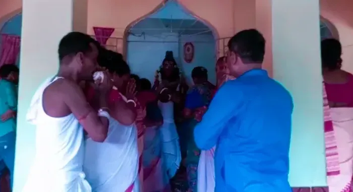 মথুরাপুর:নুরউদ্দিন:তৃণমূলের প্রার্থী আমির হোসেন লস্করকে ত্রিস্তর পঞ্চায়েত ভোটে জয়ী করার জন্য গ্রামের মহিলারা কালী মায়ের মন্দিরে পুজো দিয়ে এক পথ সভার আয়োজন করেন,