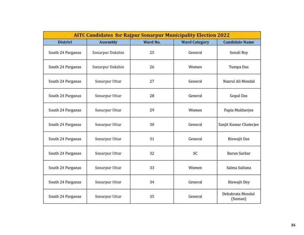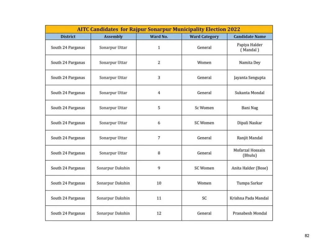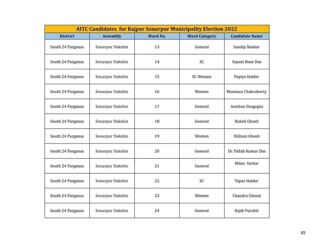 রাজপুর – সোনারপুর পৌরসভার তৃণমূল পার্থী তালিকা প্রকাশ হয়েছে গত কাল।