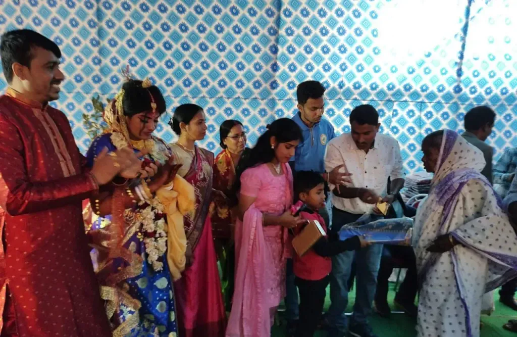 দুঃস্থ মানুষদের হাতে তুলে দেওয়া হয় নতুন পোশাক। প্লাস্টিক বর্জনের বার্তা দেওয়া হয় এদিনের শিবির থেকে।সবুজয়ানের বার্তা দিতে এদিনের শিবিরের রক্তদাতাদের হাতে চারা গাছ তুলে দেওয়ার পাশাপাশি বৃক্ষরোপণ কর্মসূচির আয়োজন করা হয়। এই কাজে পন্ডিত পরিবারকে সহযোগিতা করেন স্বেচ্ছাসেবী সংস্থা সিভিল আর্মির স্বেচ্ছাসেবরা। ছেলের এই উদ্যোগে খুশি তুফানবাবুর বাবা শিবরাম পন্ডিত ও মা উমারানী পন্ডিত। দেশসেবার কাজে নিয়োজিত সি আই এস এফ জওয়ান তুফান বাবু জানান মানব সেবার লক্ষ্য নিয়ে মানুষের পাশে দাঁড়াতে তাঁর এই কর্মসূচির আয়োজন। বিয়ে বাড়ির অনুষ্ঠানে এই ধরনের বহুমুখী সামাজিক কর্মকাণ্ডের প্রশংসা করেছেন বিয়েবাড়িতে উপস্থিত আত্মীয় স্বজন, বন্ধুবান্ধব ও শুভাকাঙ্ক্ষীরা।