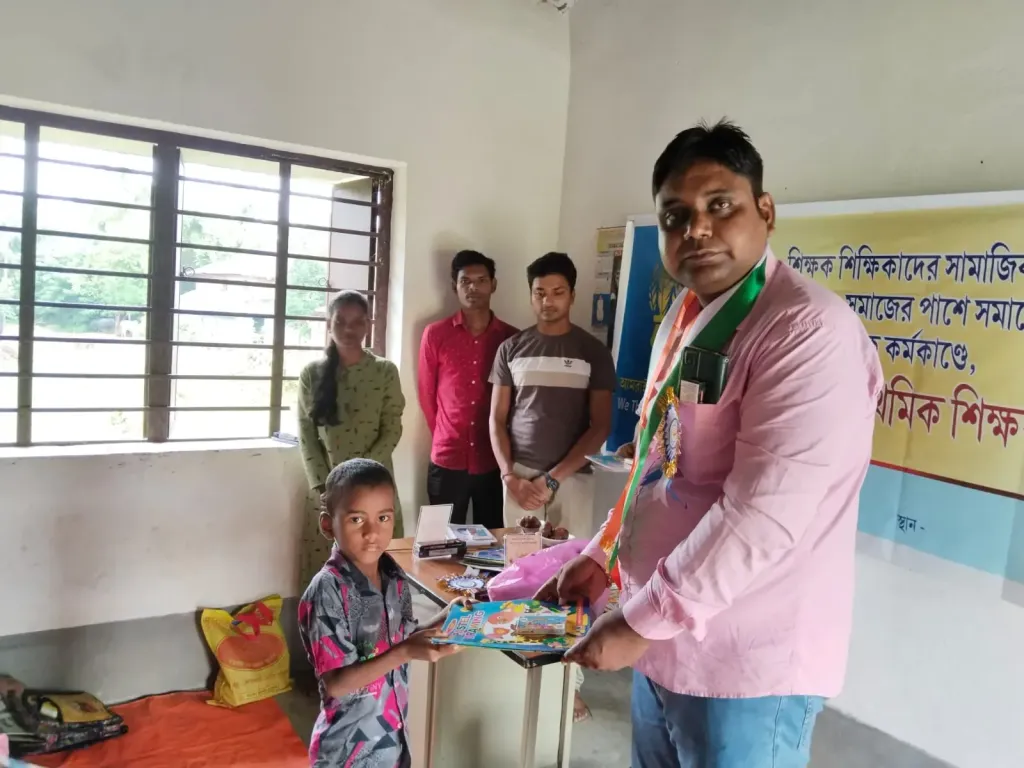 ৫ ই সেপ্টেম্বর, মেদিনীপুর:: শিক্ষকদের সামাজিক দায়বদ্ধতা ও সমাজের প্রতি কর্তব্যবোধ থেকে “আমরাই প্রাথমিক শিক্ষক” জঙ্গলমহলের অবৈতনিক “অরণ্যের পাঠশালা” র ছাত্র ছাত্রীদের নিয়ে শিক্ষক দিবস পালন করলো। প্রবল বৃষ্টির মধ্যে আজ শালবনীর জঙ্গলে ঘেরা প্রান্তিক গ্রাম শুশনিবাড়ীর আদিবাসী সম্প্রদায়ের ছাত্র ছাত্রীদের শিক্ষা উপকরণ ও মিষ্টি মুখের মাধ্যমে শিক্ষক দিবস পালন করলো আমরাই প্রাথমিক শিক্ষক।