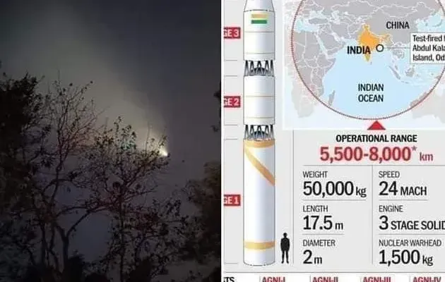 ডিআরডিও-র নিজস্ব প্রযুক্তিতে তৈরি ক্ষেপণাস্ত্র অগ্নি-৫ তা পারমাণবিক অস্ত্র বহনে সক্ষম,৫ হাজার কিলোমিটার পর্যন্ত পাল্লা ওই ক্ষেপণাস্ত্রের। এর মধ্যে নিখুঁত ভাবে লক্ষ্যবস্তুতে আঘাত হানতে সক্ষম অগ্নি-৫ সম্প্রতি অরুণাচল প্রদেশের তাওয়াংয়ে সম্মুখ সংঘাতে জড়িয়ে পড়েছিল ভারত এবং চিনের সেনা। তার মধ্যে ভারতের অগ্নি-৫-এর মতো ক্ষেপণাস্ত্রের পরীক্ষা তাৎপর্যপূর্ণ বলে মনে করা হচ্ছে। দক্ষিণ ২৪ পরগনার জেলার বিভিন্ন জায়গায়, বৃহস্পতিবার সন্ধ্যার আকাশে আচমকা দেখা যায় অদ্ভুত আলো। আর তা ঘিরেই ঘনায় রহস্য। ওই আলো ঘিরে সাধারণ মানুষের মনে তৈরি হয় কৌতূহল। এ নিয়ে জল্পনার মধ্যেই সংবাদ সংস্থা এএনআই সূত্রে জানা যায়, ওড়িশার থেকে ওই ক্ষেপণাস্ত্রের উৎক্ষেপণ ঘটানো হয়েছে বৃহস্পতিবার সন্ধ্যায়। দক্ষিণ ২৪ পরগনা বিভিন্ন জেলার সাথে সাথে জয়নগর কুলতলী ক্যানিং রায়দিঘি বারুইপুরে ও সন্ধ্যার আকাশে সেই আলো অনেকটা স্পষ্ট ভাবে দেখা গিয়েছে। বিশেষ করে অ্যান্ড্রয়েড ফোনের মাধ্যমে হাজার হাজার মানুষজন এই আলোর ছবি ক্যামেরাবন্দি করে। ঘটনাচক্রে এই ধরনের ক্ষেপণাস্ত্র এই প্রথম রাতে পরীক্ষা করা হল। ডিআরডিও সূত্রে জানা গিয়েছে, শুধু অগ্নি-৫ নয়, অগ্নি-৬ এর মতো আরও দূরপাল্লার ক্ষেপণাস্ত্র তৈরির প্রক্রিয়া চলছে। যার পাল্লা হতে পারে ৮ হাজার থেকে ১০ হাজার কিলোমিটার পর্যন্ত। বিশেষ করে চীন ও পাকিস্তানকে সতর্ক করলো ভারত অগ্নি ফাইভ সফল উৎক্ষেপনের মাধ্যম দিয়ে।