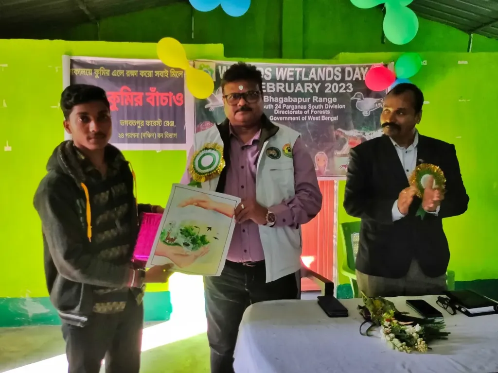 বাবলু হাসান লস্কর, সুন্দরবন, দক্ষিণ চব্বিশ পরগনা : বনদপ্তরের উদ্যোগে রামগঙ্গা রেঞ্জের ভগবতপুরে যথাযোগ্য মর্যাদায় বিশ্ব জলাভূমি দিবস পালিত হয়। এই কর্মসূচির মধ্যে ছিল স্কুলের শিশু, জেএফএম সি সদস্য সদস্যা ও বন কর্মীদের নিয়ে র্যালি একই সঙ্গে বসে আঁকা, স্কিট এবং তথ্যচিত্র প্রদর্শন সহ একাধিক ইভেন্ট অনুষ্ঠিত হয়। উপস্থিত ছিলেন, দক্ষিণ চব্বিশ পরগনা বনদপ্তরের একাধিক আধিকারিক। মিলনকান্তি মন্ডল, চিন্ময় বর্মন সহ একাধিক আধিকারিক সহ বনকর্মীরা।